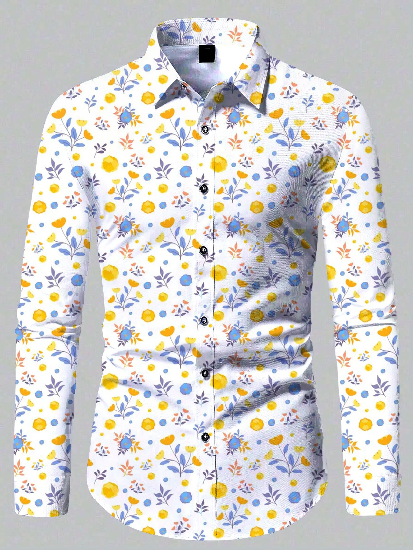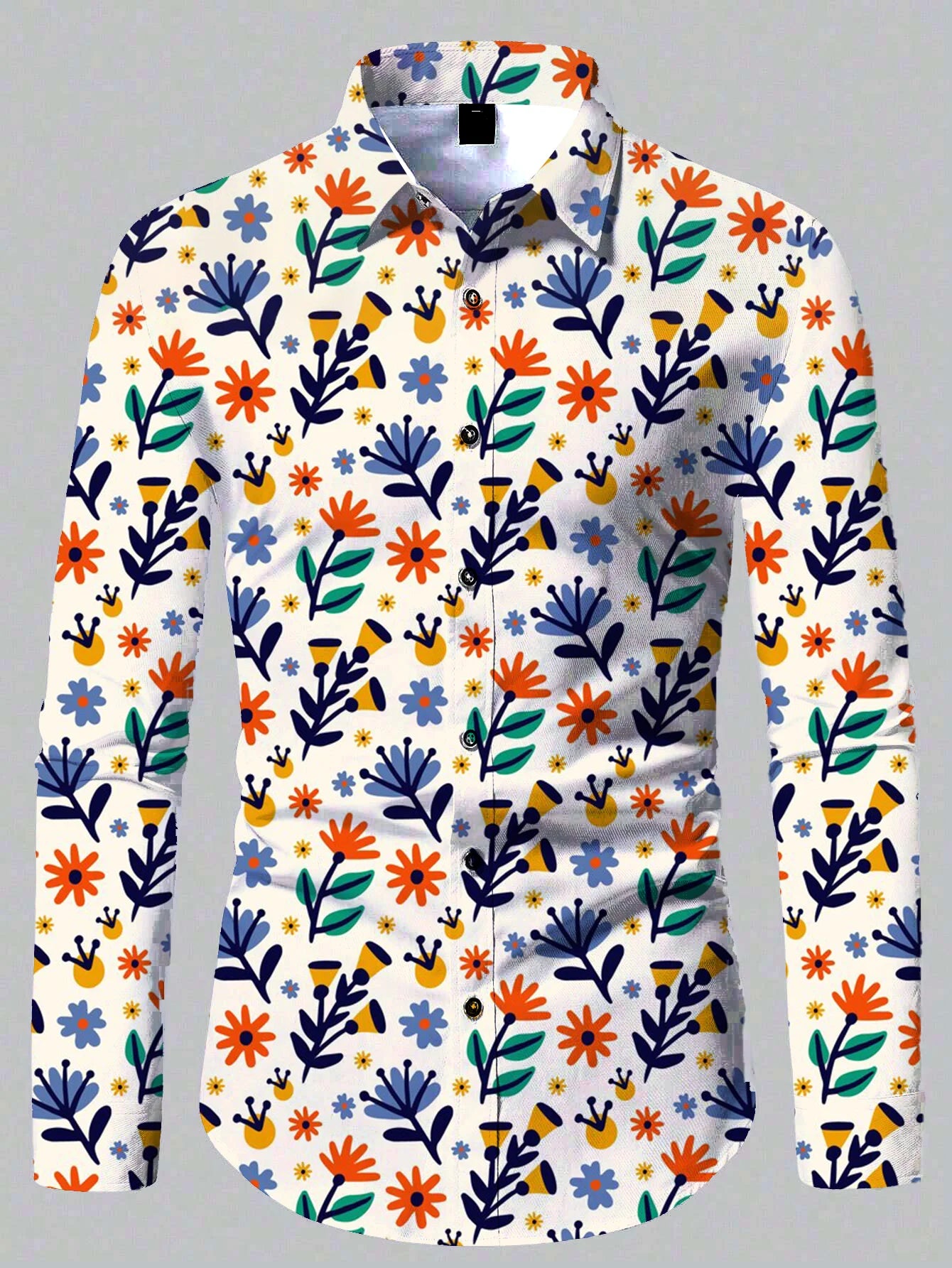 2024 Men's New Comfortable Retro Long Sleeve Shirts New Casual Design Shirt Fashion 3D Printed Flower Pattern Men's Clothing