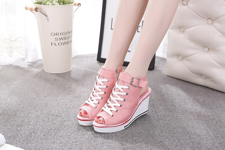 High-top canvas female fish mouth sandals