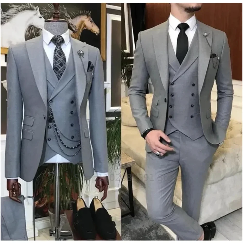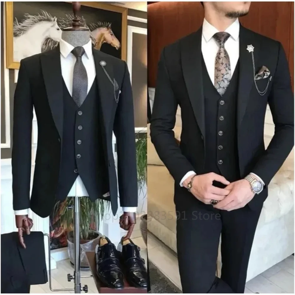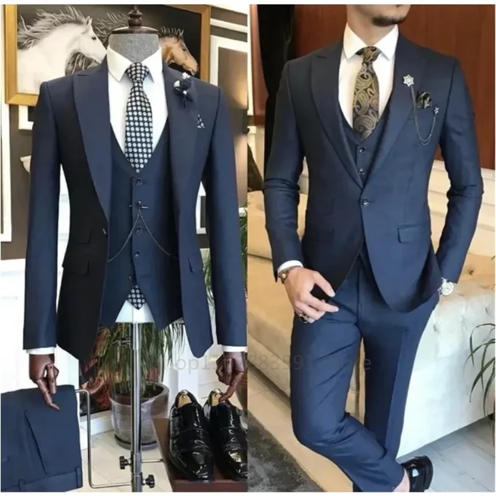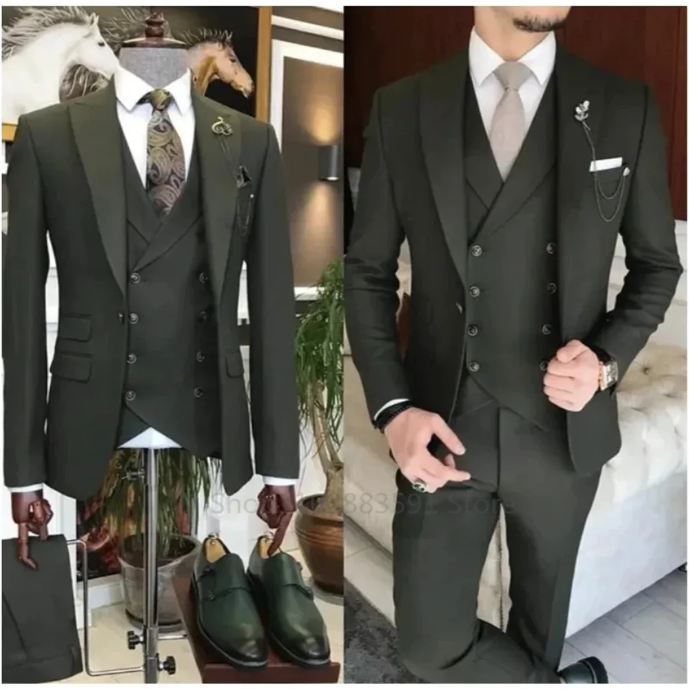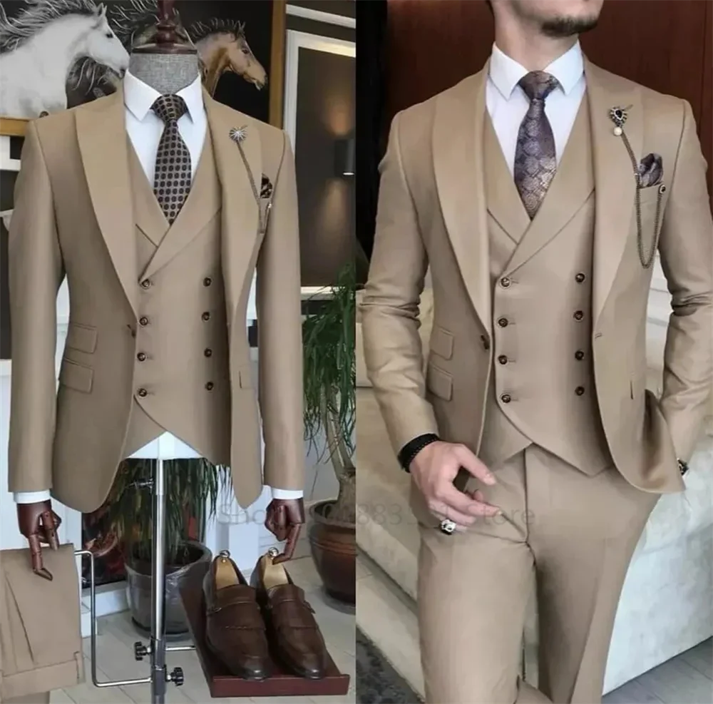 New Business Khaki Formal Men's Slim Fit Suits 3 Pieces Wedding Groom Prom Terno Masculino Custom Blazer Jacket Vest Pant Sets