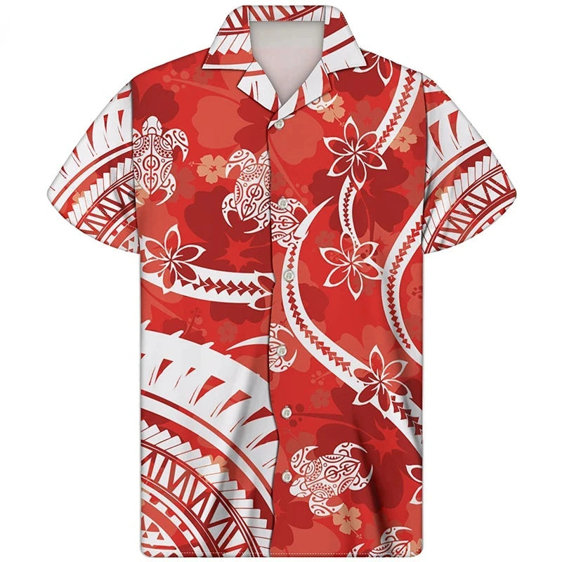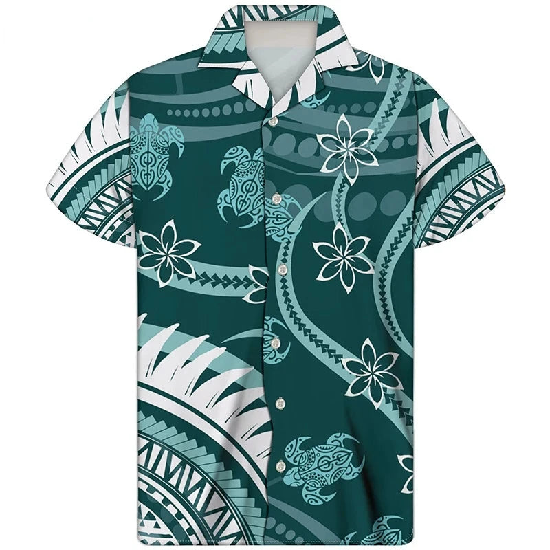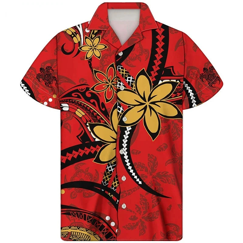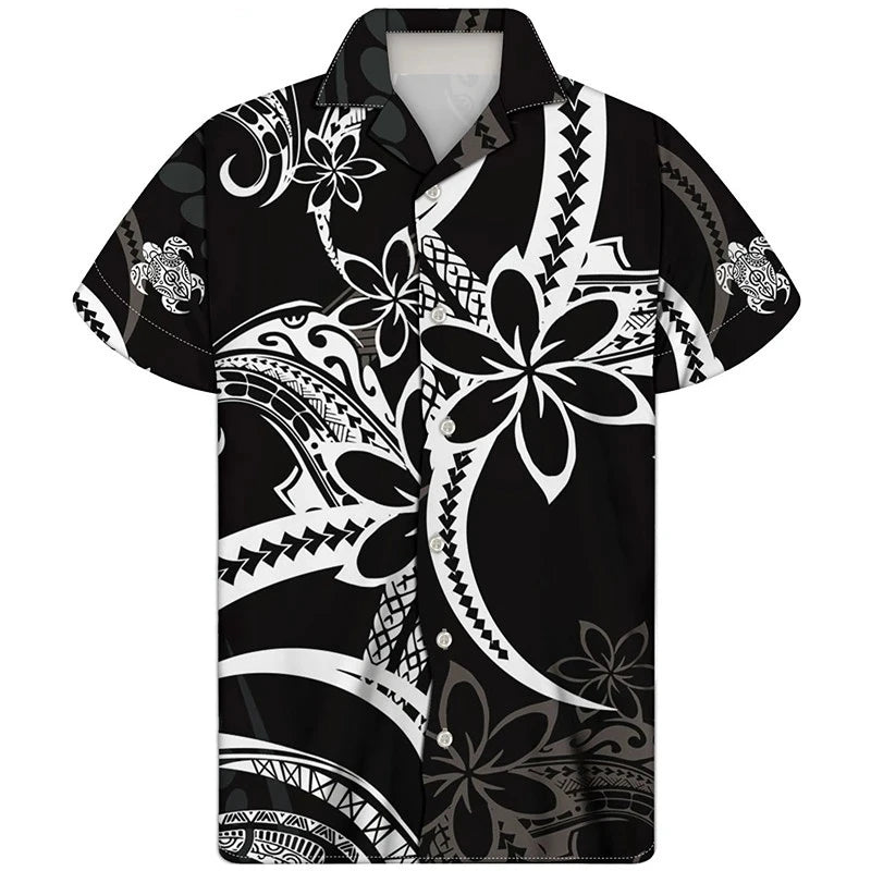 Newest Oversized Harajuku Fashion Polynesian Tribal Print Hawaiian Shirt Men's Casual Short Sleeve Summer Breathable Top Shirts