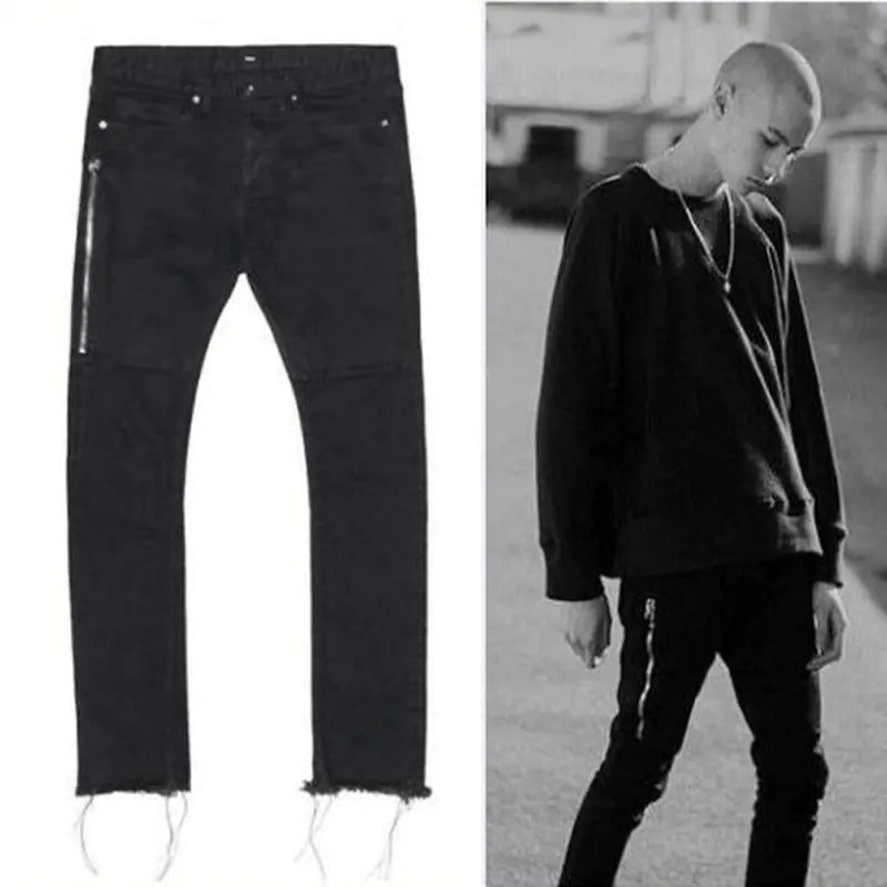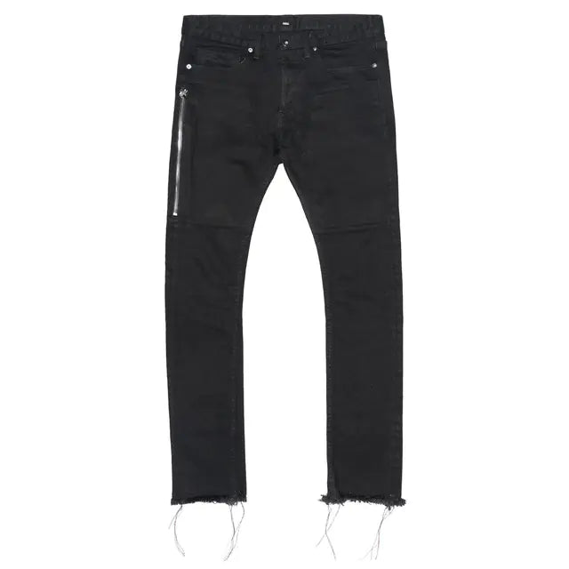 Discover the ultimate in style and comfort with our Pure Black Slim-Fit Zipper Denim Pants. Tailored from Cotton Stretch Denim, these pants offer a perfect blend of durability and flexibility, ensuring you move with ease while looking effortlessly chic.