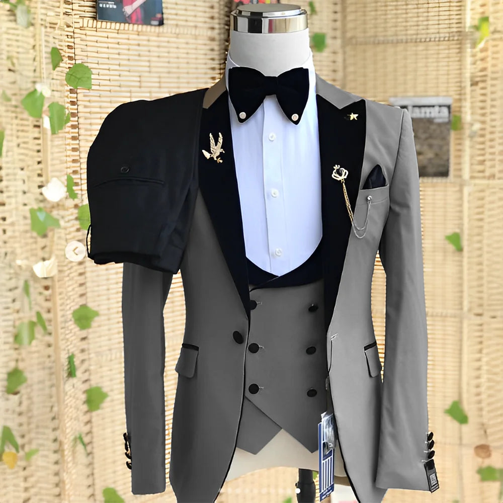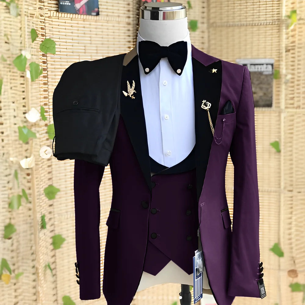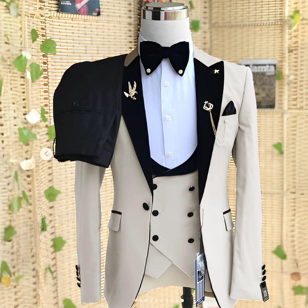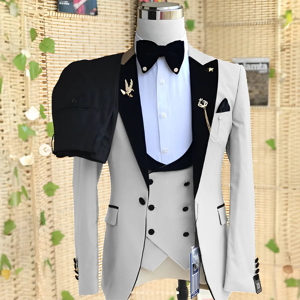 Wedding Men's 3-piece Suit Set (Jacket Pants Vest) Groom Tuxedo Formal Blazer Elegant Suit for Men