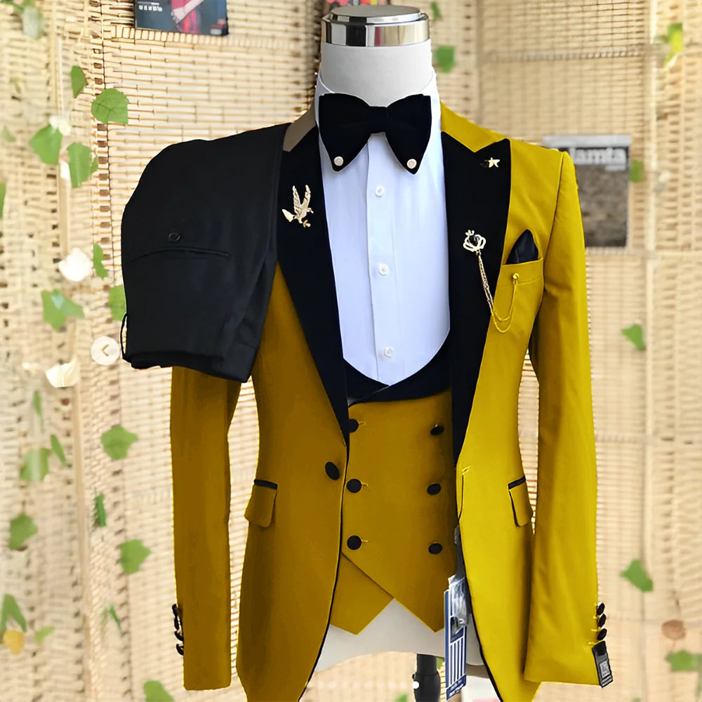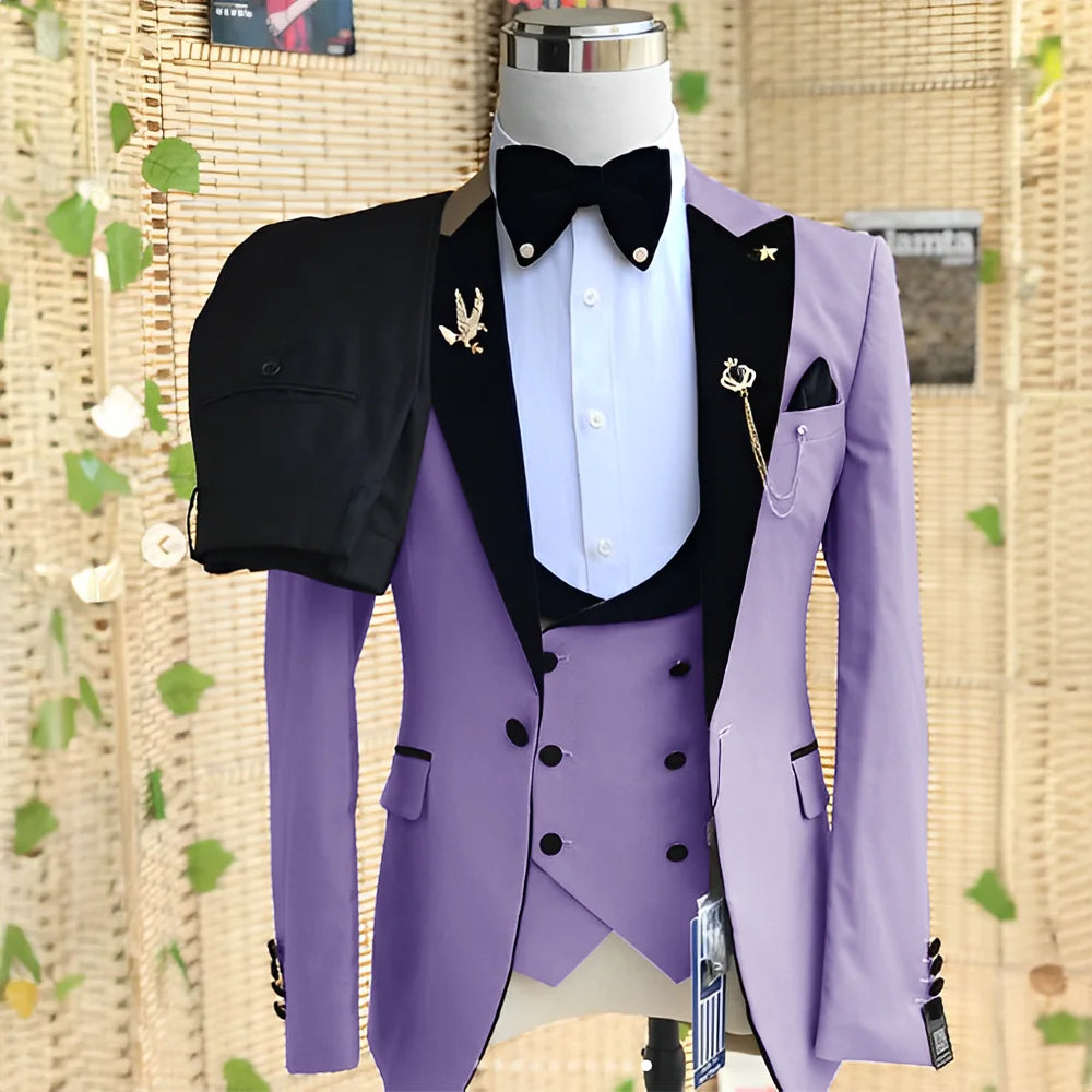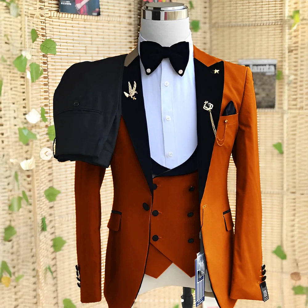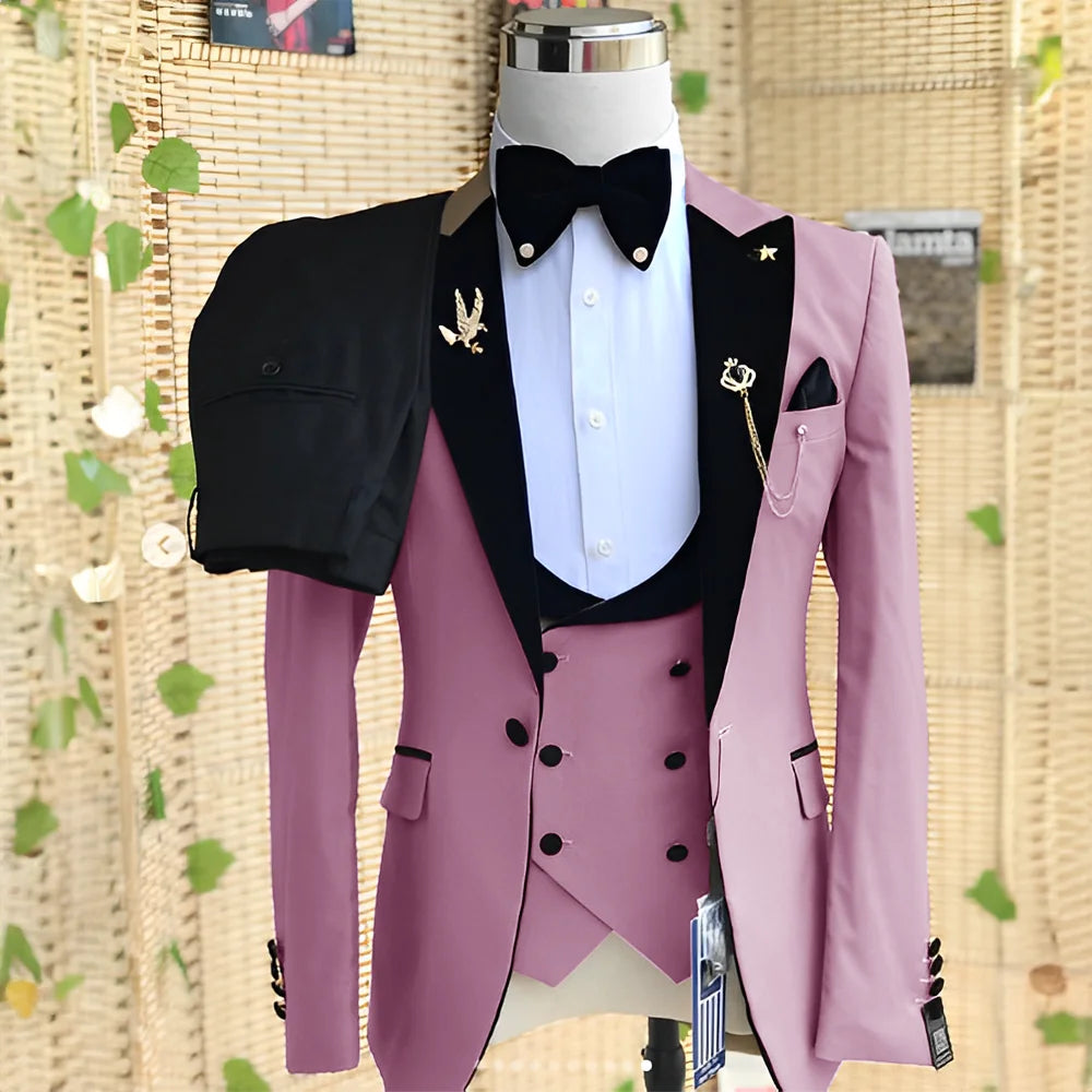 Wedding Men's 3-piece Suit Set (Jacket Pants Vest) Groom Tuxedo Formal Blazer Elegant Suit for Men